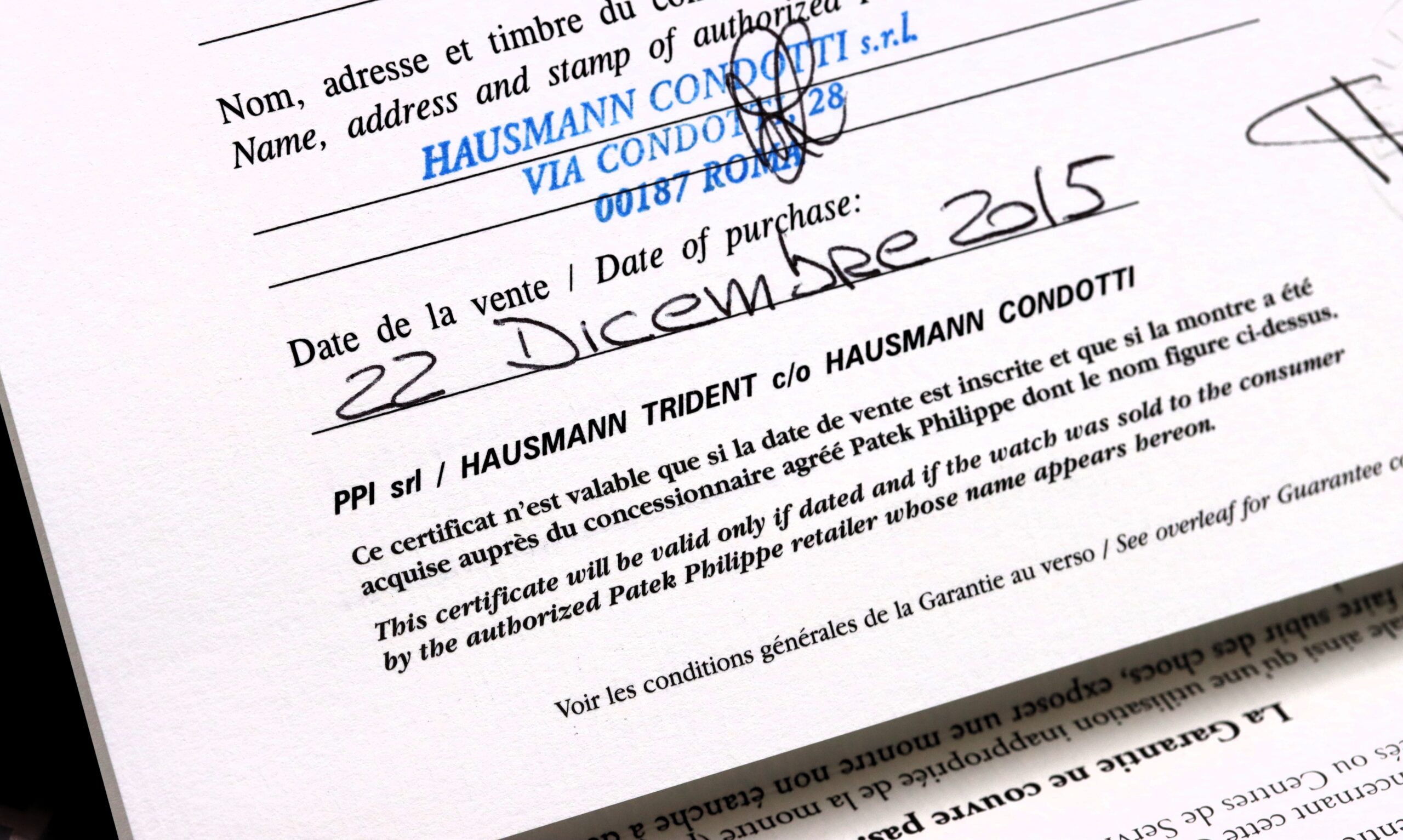 Garanzia Patek Philippe [SI] Hausmann (Roma)