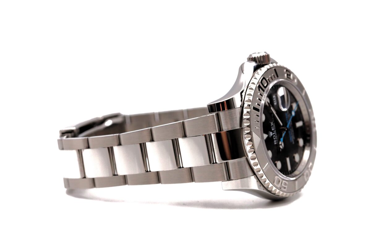 Il bracciale è dotato di una chiusura Oysterlock che garantisce una maggiore sicurezza e stabilità poiché non può essere aperto accidentalmente. Inoltre, il Rolex Yacht-Master è dotato di un meccanismo di regolazione rapida del calendario, che consente di modificare la data con facilità.